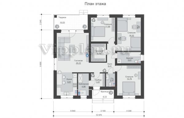 | Размеры дома: | 11.25м×12.05м |